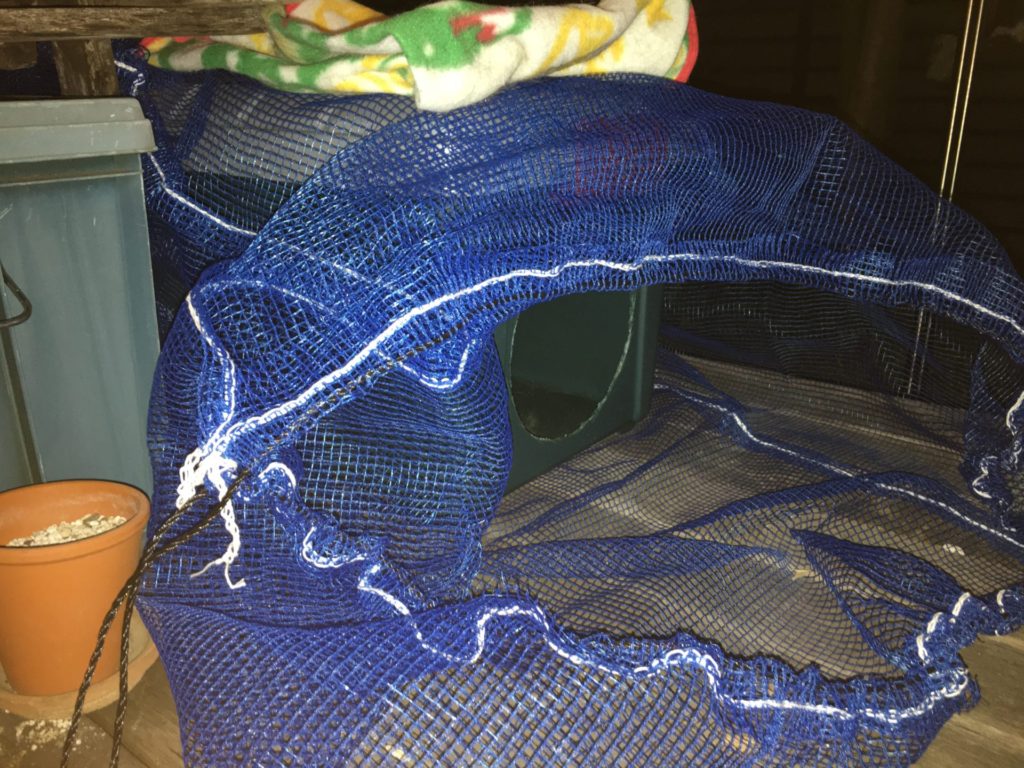 これは、市販の捕獲器で捕まらなかった野良猫時代のぽぽを捕まえた実績のあるもの。見張っていないと操作できないのが少し残念な点ですが、安全性はバッチリで、メッシュの巾着袋はホームセンターで600円以下で購入できます。ネットでは送料分が含まれているので、倍くらいの値段になってしまう場合も少なからず。私の買ったものは、100❎120mmサイズです。