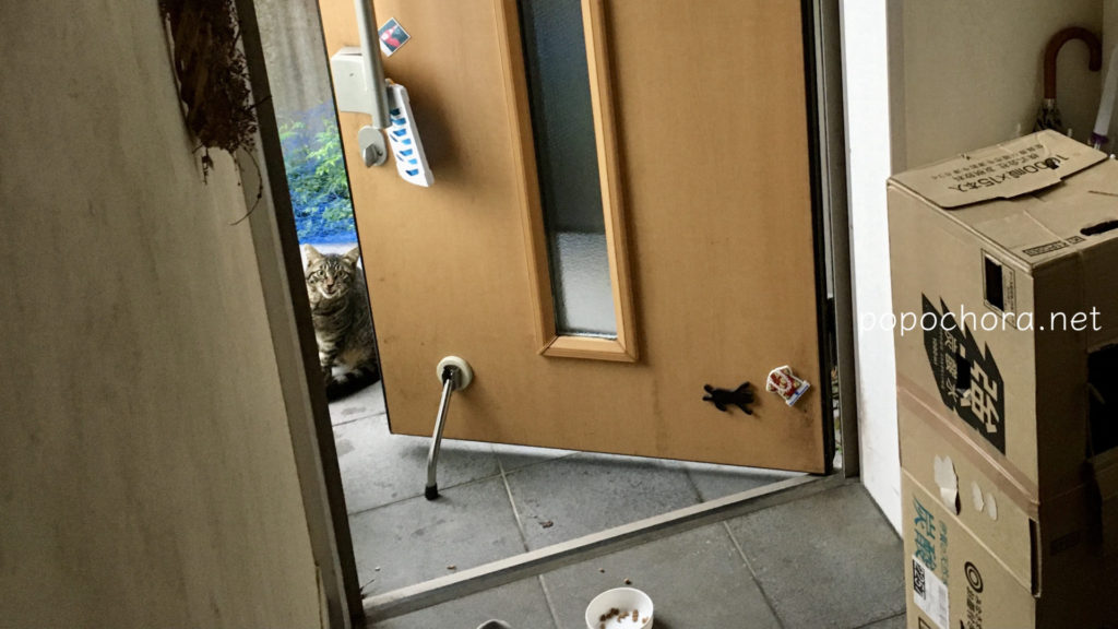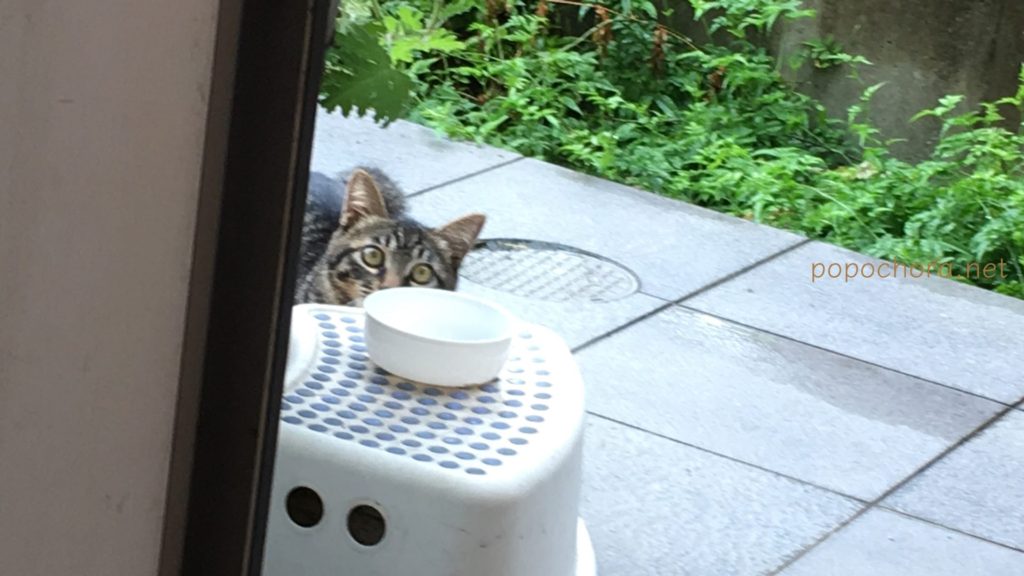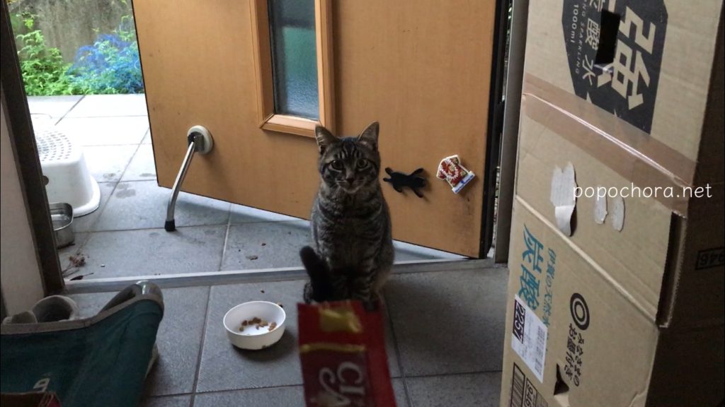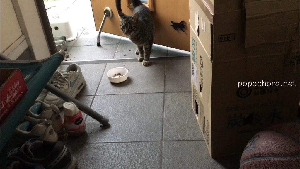 こちらは9月1日の様子。私はなんとか距離を縮めようとドアを開けておいでおいでをしますが、早くいつものところにフードを置いてくれ、と言わんばかりに怒ったようにニャオニャオ鳴きます。
