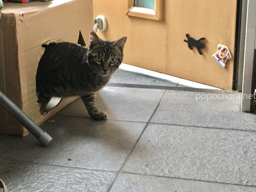一層このまま外に戻らずにいてくれたらいいのに、と思っていましたが、この後とらおはまた玄関のすぐ外に戻ってしまいました。