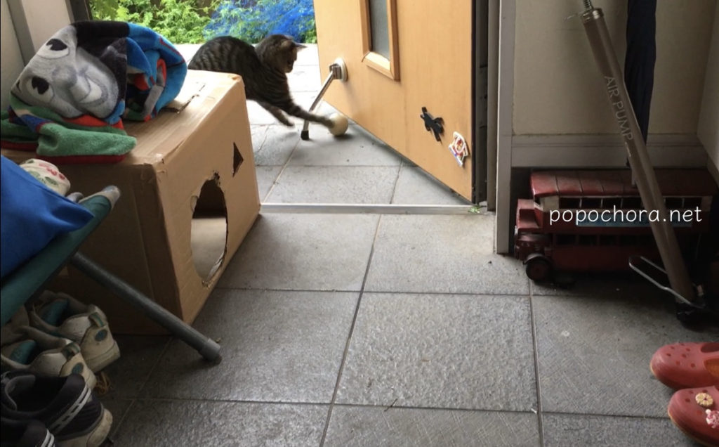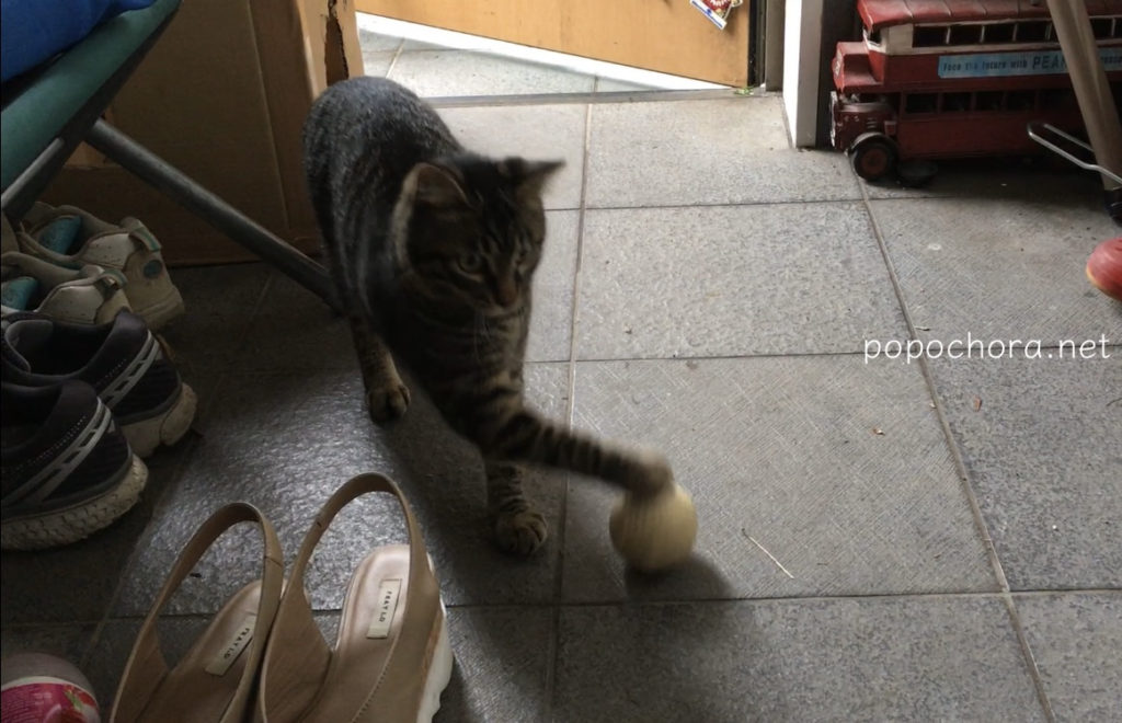 なるべく玄関の中で遊んで欲しいのですがどうしてもボールが外に出てしまい私が慌てて拾いに行ったこともありました。とらおがそれを追いかけて車に轢かれたら、と思うと気が気でなかったので、